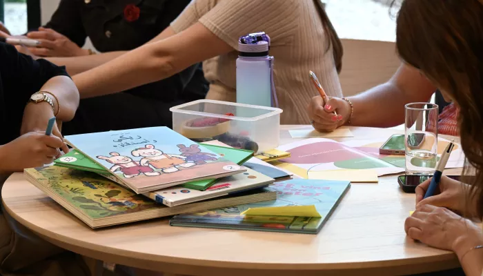 Samen met De Schoolbrug organiseert het kleuterteam doelgerichte activiteiten voor ouders in de klas rond voorlezen, het belang van boekjes en taalrijke spelprikkels.